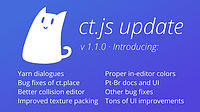 Another update! This one solves serious problems with ct.place, add support for dialog system Yarn, adds better collision editor, and more. Contributions from community Improved collision shape editor...
