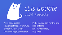The first major update to ct.js has just been released! This update solves bugs, improves UI, adds modules for better sounds and for auto-scaling the drawing canvas, adds raytracing to ct.place, and m...