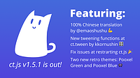 β¨ New Features New tweening functions (elastic, bounce, and with backward motion) for ct.tween by kkornushin Two UI themes Pooxel Green and Pooxel Blue for that retro feel πΎ β‘οΈ General Improv...