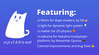 Ct.js v3.1.0 is out! π TypeScript support, multiple ct.js windows support, translations, and a bunch of QoL improvements and fixes Though I had little time working on ct.js these days, our marvello...