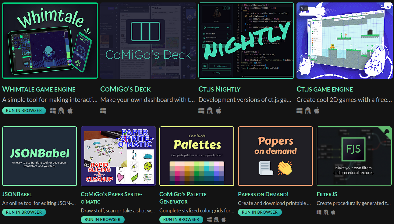 I have other useful tools and even game engines on my itch.io page: